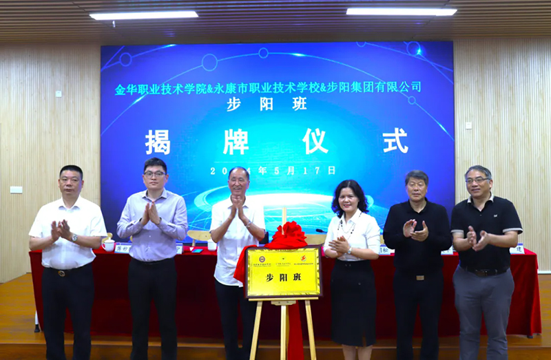 5月17日,步陽集團(tuán)與金華職業(yè)技術(shù)學(xué)校、永康市職業(yè)技術(shù)學(xué)校三方簽約成立步陽班。簽約儀式在永康職業(yè)技術(shù)學(xué)校隆重舉行,儀式由永康職業(yè)技術(shù)學(xué)校黨委書記夏其明主持。