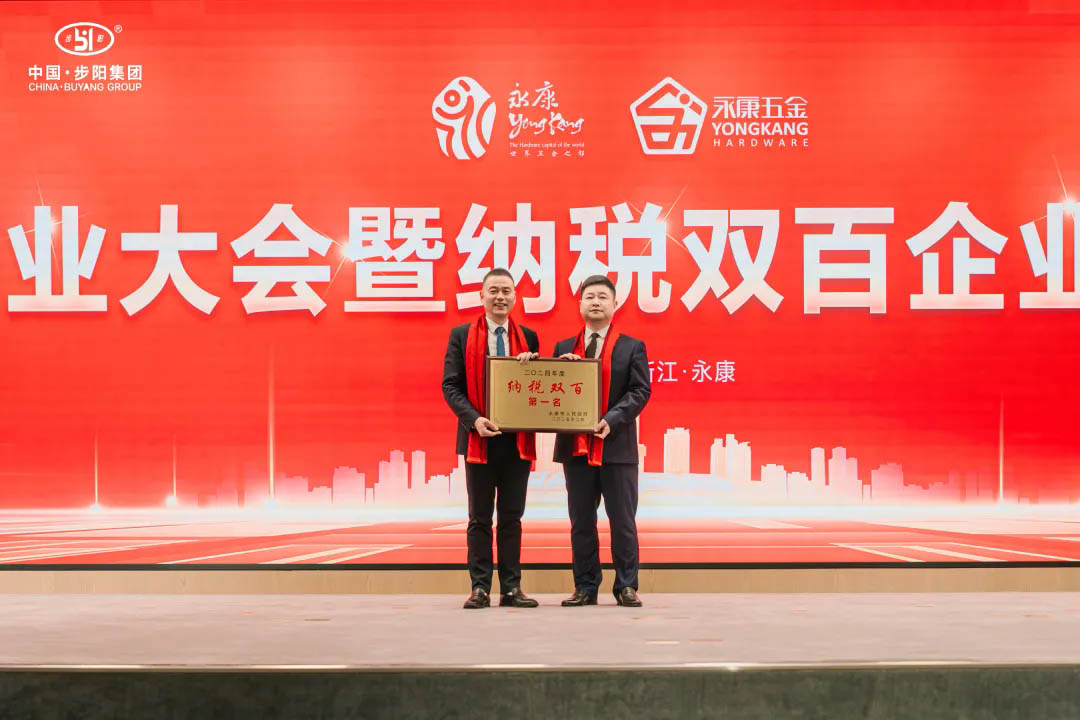 在大會(huì)的頒獎(jiǎng)環(huán)節(jié),永康市市委書記胡勇春親自為徐步云董事長(zhǎng)授予了“納稅雙百第一名”獎(jiǎng)牌,對(duì)步陽集團(tuán)為永康市經(jīng)濟(jì)發(fā)展做出的杰出貢獻(xiàn)給予了高度評(píng)價(jià)。這一榮譽(yù)不僅是對(duì)步陽集團(tuán)過去一年努力付出的肯定,更是對(duì)未來發(fā)展的激勵(lì)和鞭策。