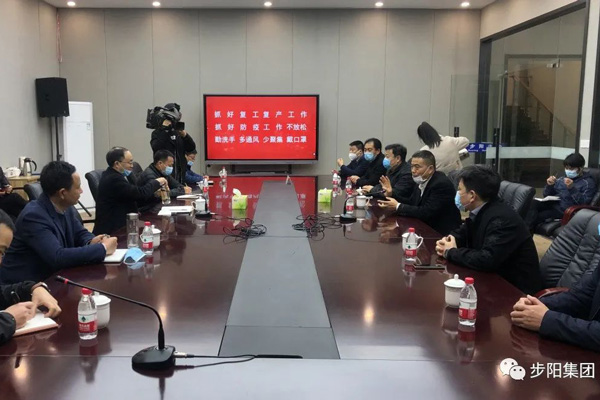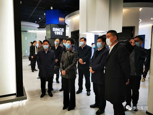 3月4日,金華市委副書記陳玲玲到步陽開展“三服務”活動時講到:步陽是個大企業(yè),復工走在全市前面,很不容易,步陽為抗擊疫情主動捐款幾百萬,是一個有責任有擔當?shù)膼坌钠髽I(yè)!看了你們的科技進步,相信步陽在永康市委市政府的關心下,會渡過眼前難關,當好行業(yè)排頭兵!金華市委成員、永康市委書記金政等領導、集團董事長徐步云等陪同調研考察!