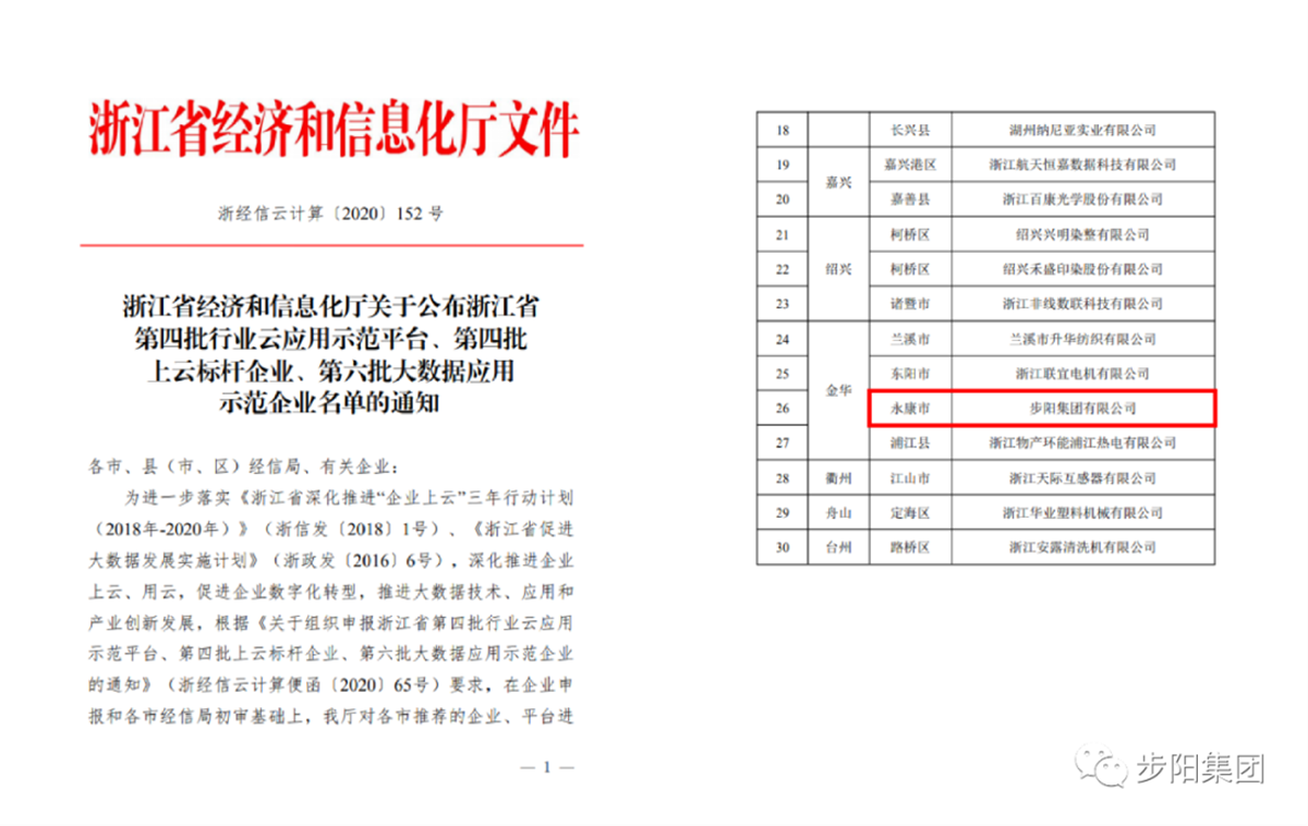 近日,浙江省經(jīng)濟(jì)和信息化廳公布了“浙江省第六批大數(shù)據(jù)應(yīng)用示范企業(yè)”評(píng)審結(jié)果,經(jīng)過(guò)層層篩選及多重審核,步陽(yáng)集團(tuán)憑借步陽(yáng)5G智慧工廠和大數(shù)據(jù)應(yīng)用領(lǐng)域的實(shí)踐經(jīng)驗(yàn)和領(lǐng)先優(yōu)勢(shì),從眾多申報(bào)項(xiàng)目中脫穎而出,成功入選。