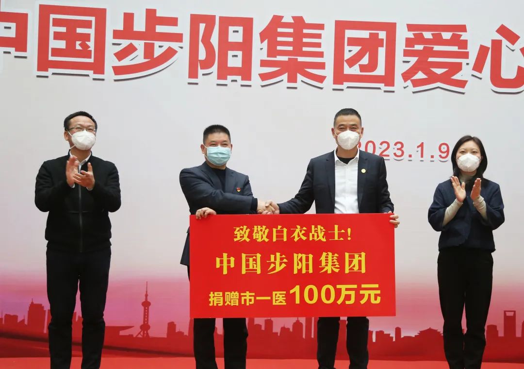 永康市委常委、副市長俞蘭代表永康市委市政府向關(guān)心支持我市衛(wèi)生事業(yè)發(fā)展的步陽集團(tuán)表示感謝,向一直奮戰(zhàn)在疫情防控一線的全體醫(yī)務(wù)工作者致以誠摯的問候。步陽集團(tuán)作為我市優(yōu)秀企業(yè)代表,在做強(qiáng)做大自己事業(yè)的同時(shí)不忘回報(bào)社會。此次向市一醫(yī)定向捐款100萬元,充分體現(xiàn)了對衛(wèi)生事業(yè)關(guān)心和支持,為廣大企業(yè)樹立了良好榜樣。