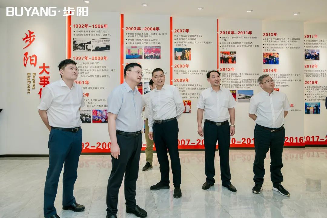 5月16日,浙商總會黨委書記、省工商聯(lián)副主席呂曉峰同省工商聯(lián)宣傳教育部部長朱遷進蒞臨步陽集團進行實地調(diào)研走訪。浙商總會會員服務(wù)部部長羅斐茜 ,浙商總會對外聯(lián)絡(luò)部部長夏霆,浙商總會辦公室主任王凱參加調(diào)研。